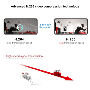 HEVC is the latest video compression standard which brings extensive possibilities and optimism to the HD-IP Camera by addressing H.264 problems, such as shortage of bandwidth, improving transmission efficiency and delivers ultra HD image quality. Compared with current H.264, the HEVC is able to double the data compression ratio, while improve video quality with low bit-rate, and deliver smooth superb HD video with low bandwidth, which in turn, reducing the network bandwidth, and save up to 50% more hard drive storage space.