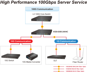 The XGS-6350-24X4C provides IPv6 management and enterprise-level secure features such as SSH, ACL, WRR (Weighted Round Robin) and RADIUS authentication. The XGS-6350-24X4C thus helps the enterprises to step in the IPv6 era with the lowest investment. In addition, you don’t need to replace the network facilities when the IPv6 FTTx edge network is built.