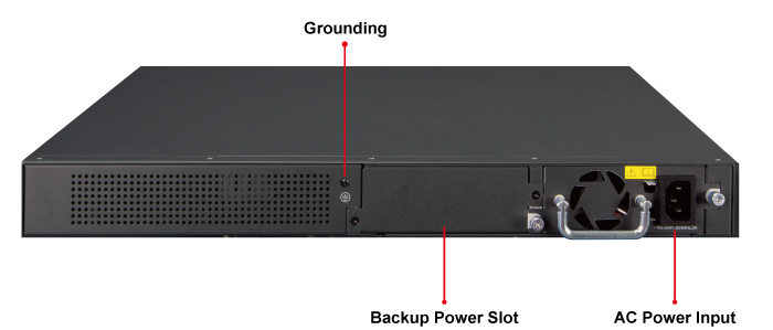 The XGS-6350-24X4C is equipped with one extractive 100~240V AC power supply unit, so it is easy to replace the power for users. Besides, the XGS-6350-24X4C reserves another backup power slot on the rear panel and users can add the second AC or DC power to the redundant power supply installation. The AC power or DC power is optional. The redundant power system is specifically designed to handle the demands of high-tech facilities requiring the highest power integrity.